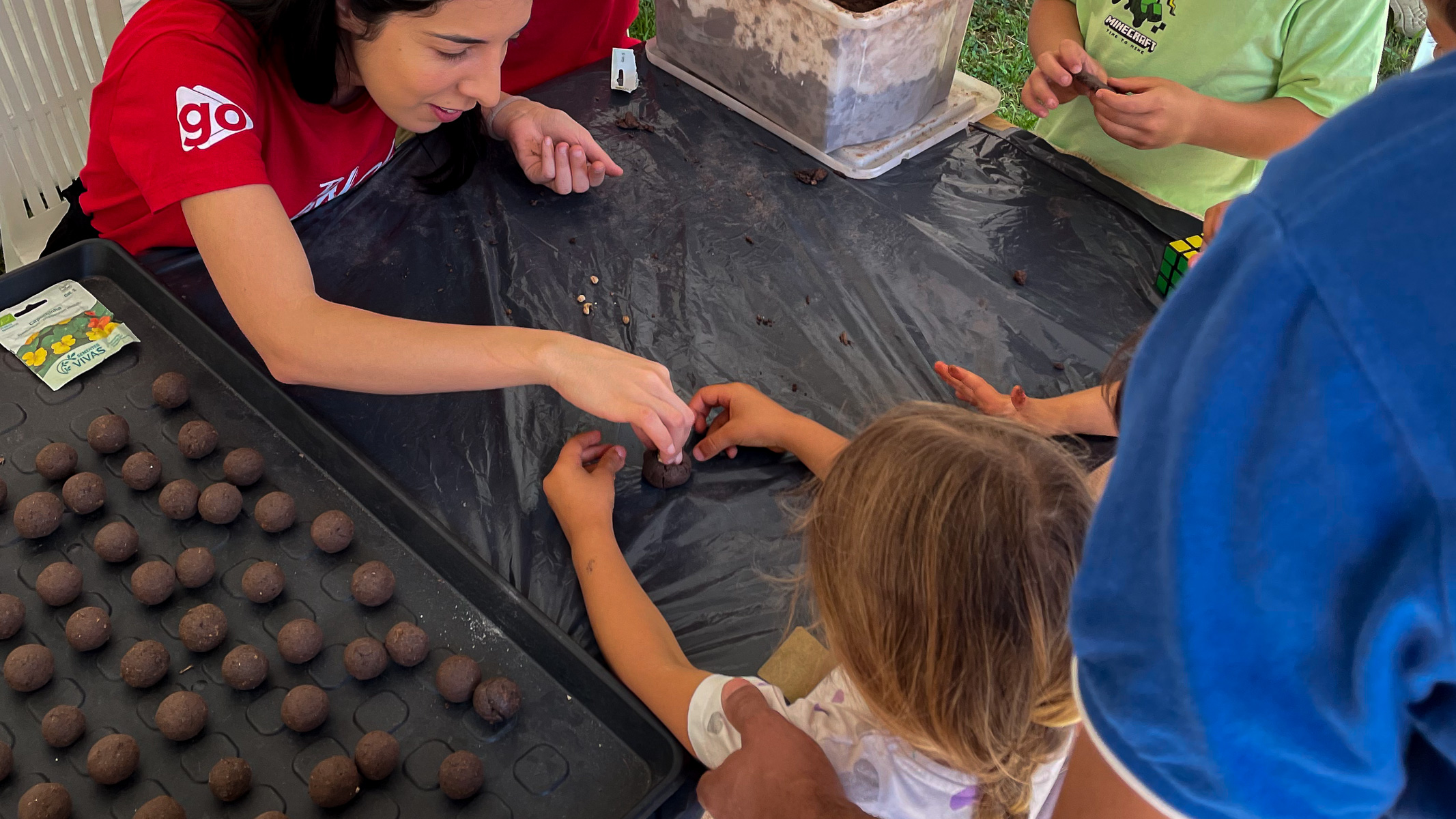 Entre sementes e sorrisos, a atividade das “Seed Bombs” convidou os mais novos a meter as mãos na terra! Combinando argila, terra e sementes, os participantes criaram pequenas “bombas de sementes” que, quando lançadas na natureza, ajudarão a fazer crescer flores nativas, promovendo a biodiversidade e o respeito pelo ciclo da vida.